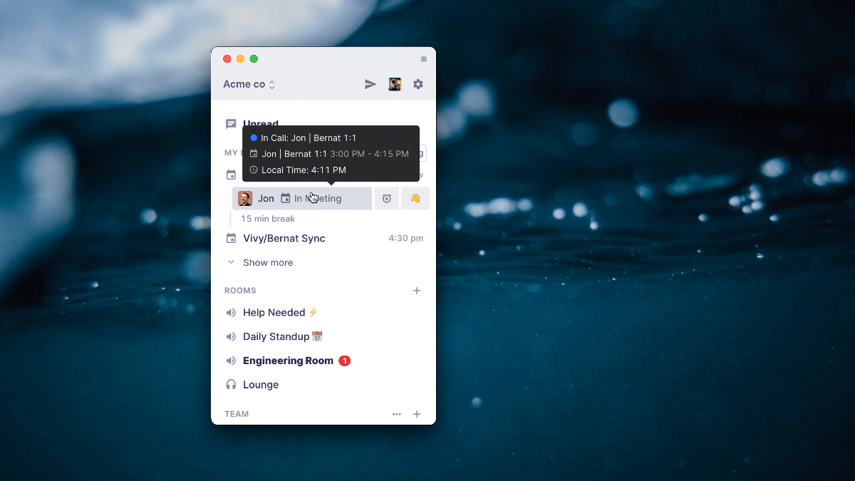 If you're running late to a meeting, you can now click on a meeting and send a message to everyone attending. Chat is synced when you are in and out of the meeting.
