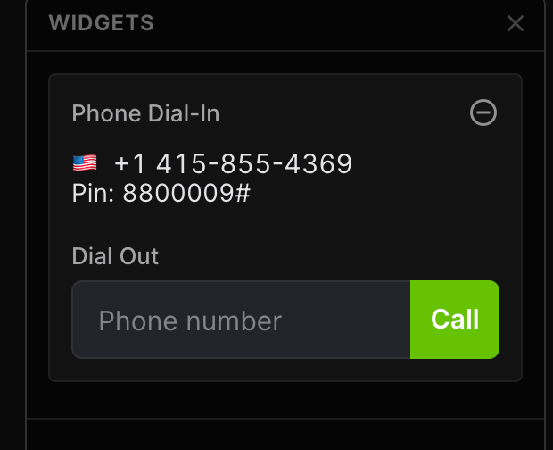 This adds the dial-in widget with instructions you can give to your teammates who want to call in: