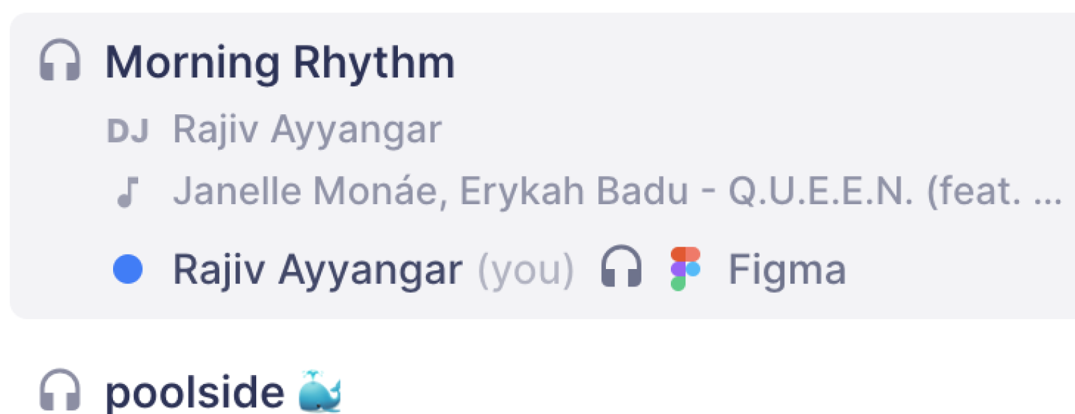 Presence can also be functional. I can click on a song to listen along to Bernat's tracks via Spotify integration. In a Tandem call, you can click on someone’s Google Doc icon to jump to their doc, allowing you to literally "get on the same page," assuming you have permissions.