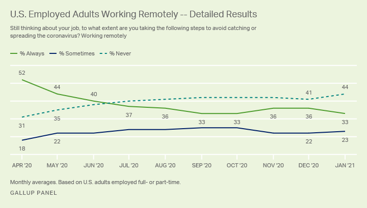 Gallup’s Covid-19 tracking survey, US adults’ remote work status